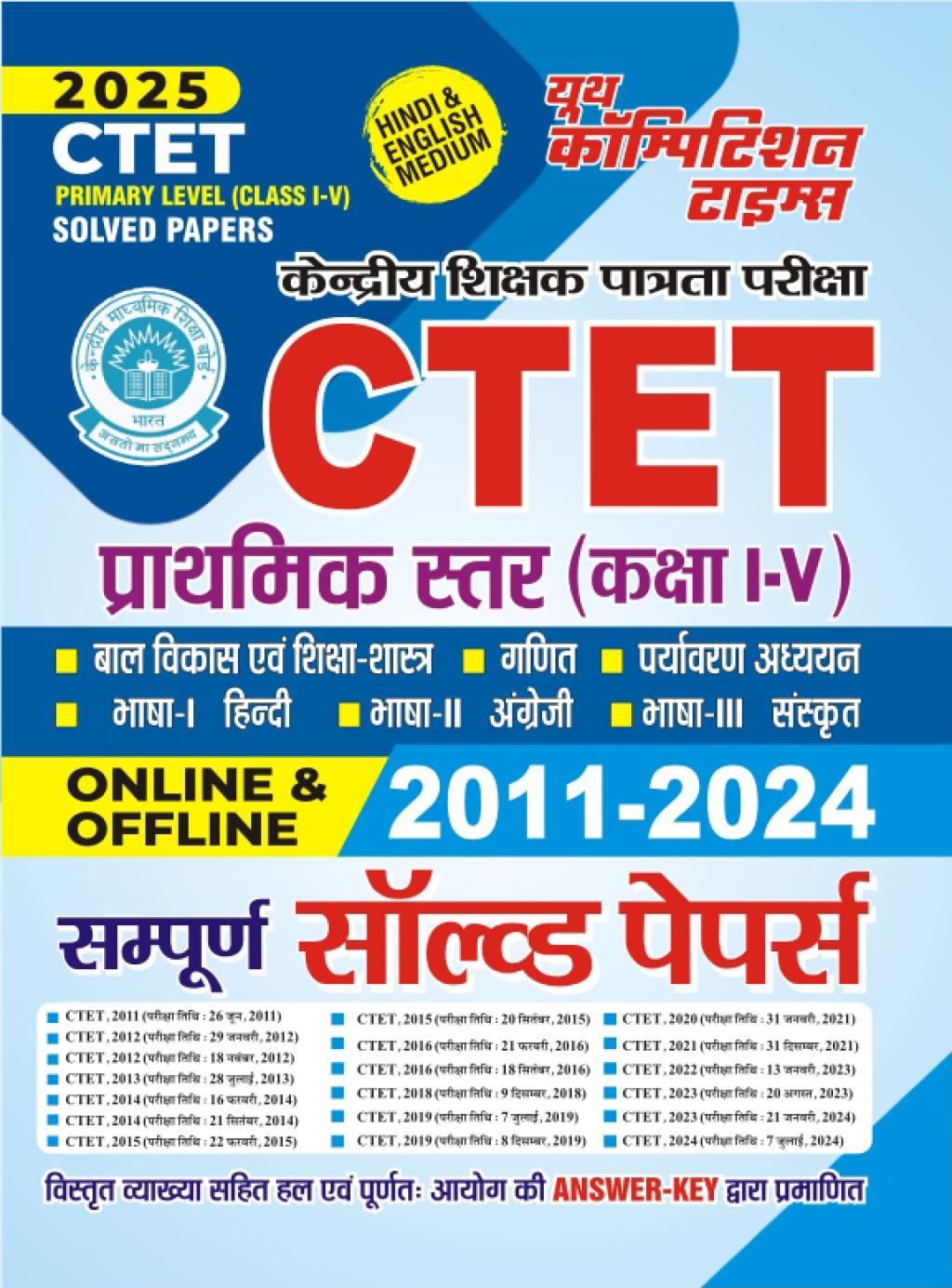 Hindi & English Medium - CTET Primary Level (Class I-V) Solved Papers (2025)