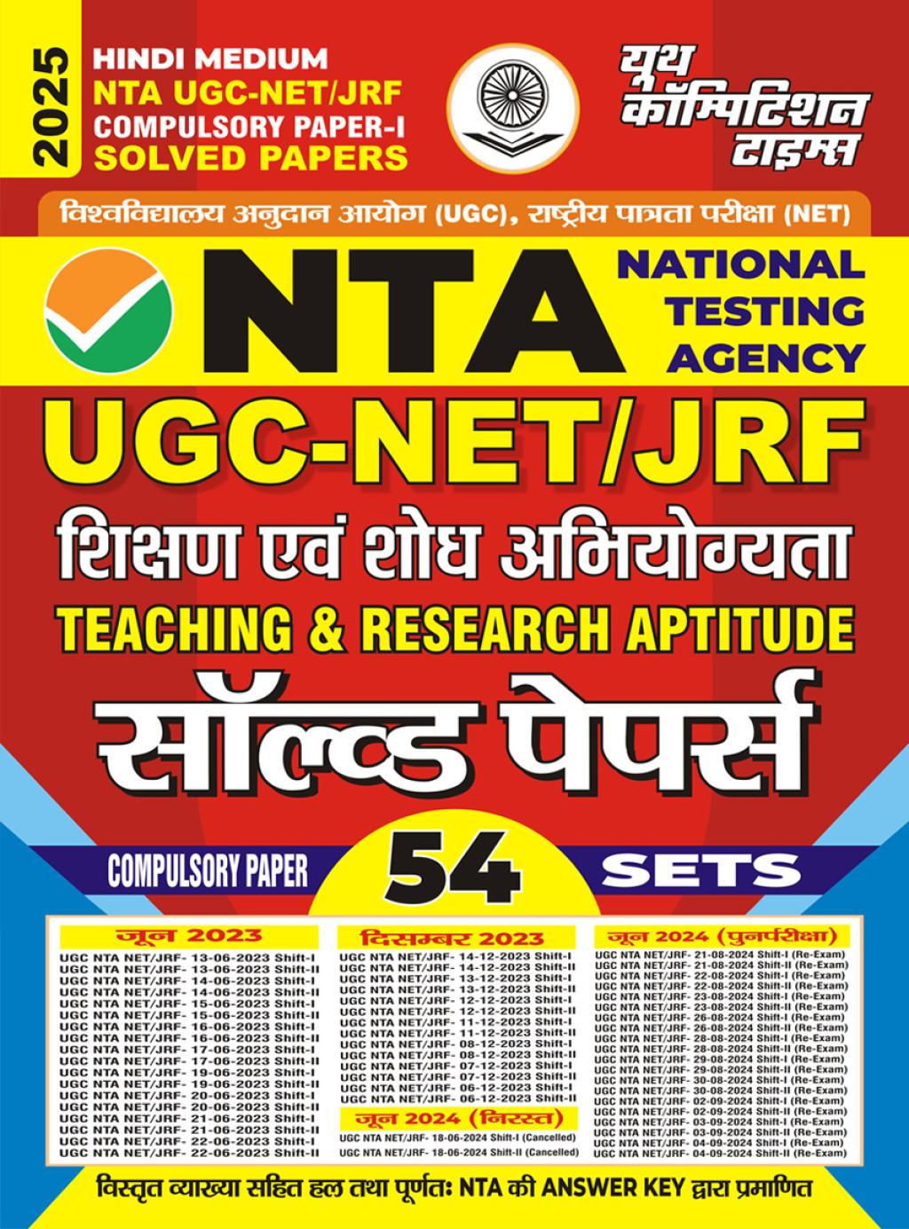 Hindi & English Medium) POD) 54 SETS NTA UGC NET/JRF TEACHING & RESEARCH APTITUDE Compulsory Paper-I, Solved Papers HINDI MEDIUM 2025