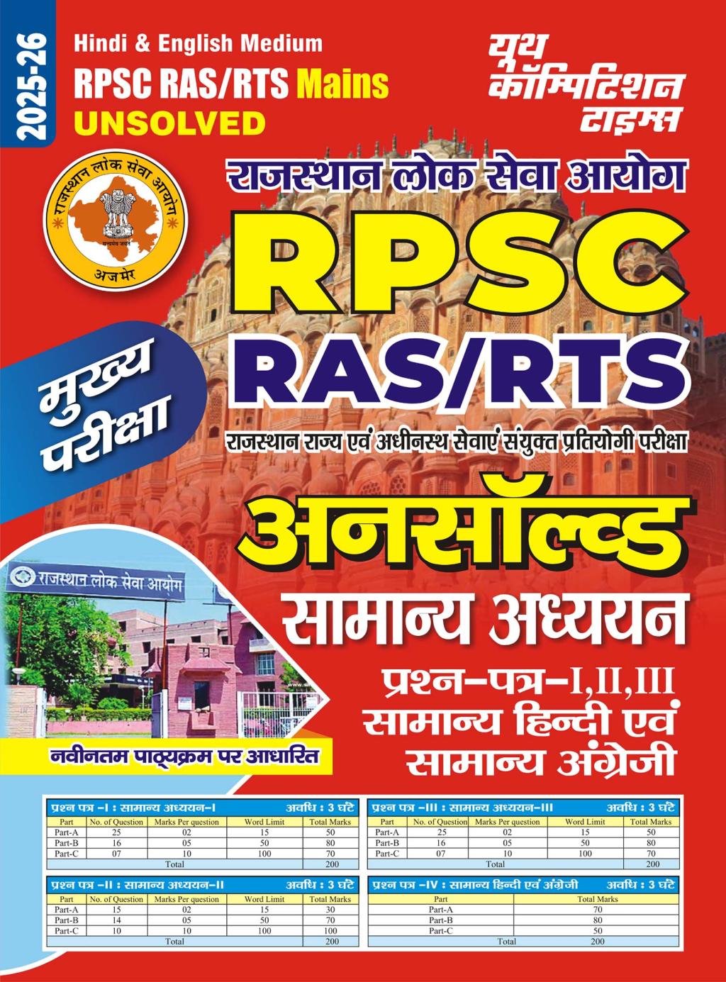 RPSC RAS/RTS MAINS GENERAL STUDIES PAPER- I,II,III, GENERAL HINDI & GENERAL ENGLISH UNSOLVED